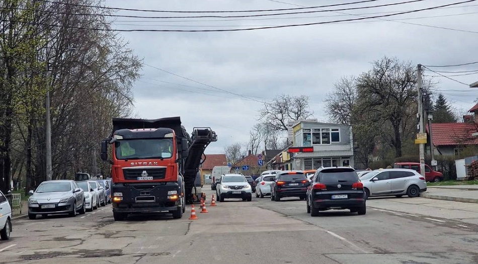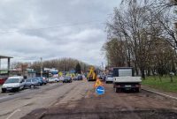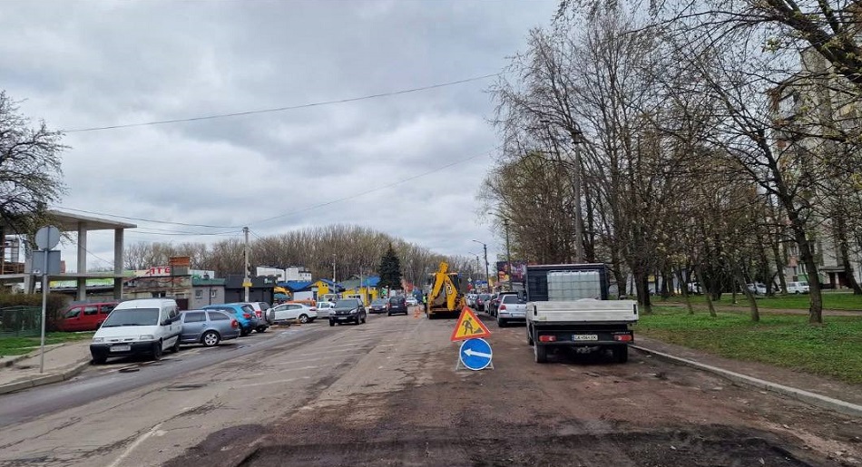 На ділянці працює великогабаритна спецтехніка, у зв’язку з чим рух транспорту ускладнений та можливе утворення заторів.