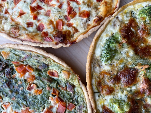 Ми готуємо кожен кіш із якісних інгредієнтів, дотримуючись балансу смаків та текстур. Рум’яна скоринка, ніжна сирна заливка та продумані поєднання начинки роблять їх по-справжньому особливими.